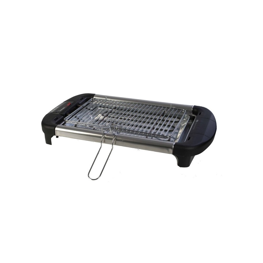 230V~50Hz 2000W. Ideale per grigliare carni, pesce, verdure; Griglia inox regolabile a 3 diverse altezze + griglia doppia inox 405x255mm con impugnature pieghevoli; Il vassoio interno raccoglie grassi e liquidi, è facile da pulire; Corpo inox, con supporti laterali in plastica termoresistente; Resistenza inox estraibile, con interruttori 0/I e di sicurezza (arresta il funzionamento se è rimossa o mal inserita nella sua sede), e con spia luminosa. Piedini anti-graffio.