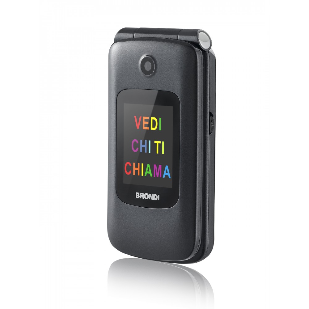 Altre funzioni: • Alto volume degli squilli e della conversazione • Comoda base di ricarica • FLIP ATTIVO: rispondi e chiudi la chiamata aprendo e chiudendo il FLIP • Tasto SOS: invia SMS e chiama automaticamente i numeri memorizzati • Grandi tasti retroilluminati • Annuncio del numero che si sta selezionando • 11 Memorie dirette per la chiamata rapida • Tasti laterali: Volume, torcia • Comoda torcia a LED • SMS con scrittura intuitiva • Radio FM, Auricolari inclusi • Rubrica 300 nomi e numeri • Vivavoce sul portatile • FORTE Vibrazione