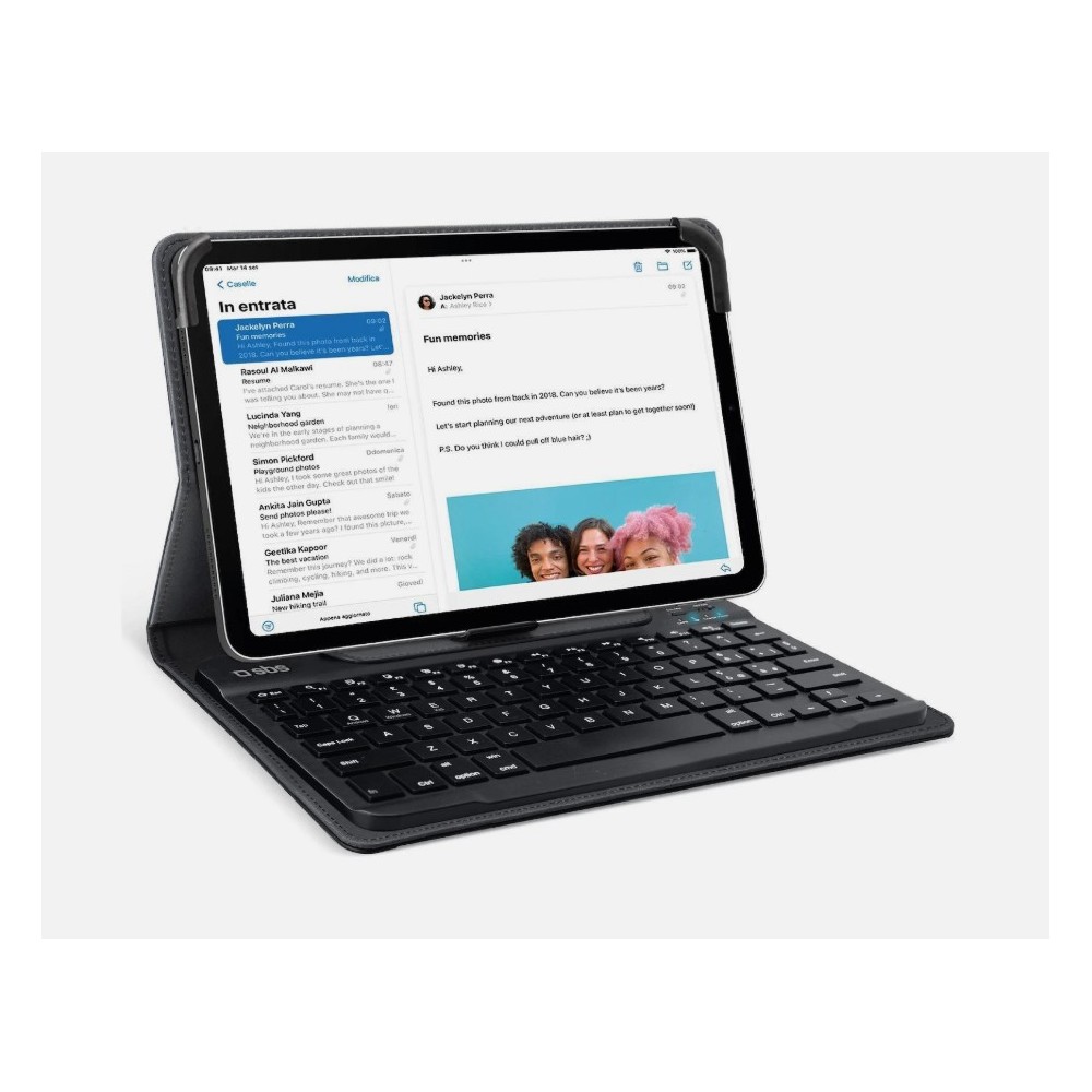 La tastiera universale è compatibile con tutti i device dotati di connessione wireless. La cover integrata è stata pensata per i tablet o smartphone fino a 11": fissa il tuo device facilmente grazie alle fasce elastiche regolabili. Il morbido interno in microfibra, inoltre, tiene al sicuro il tuo dispositivo senza rovinarlo.