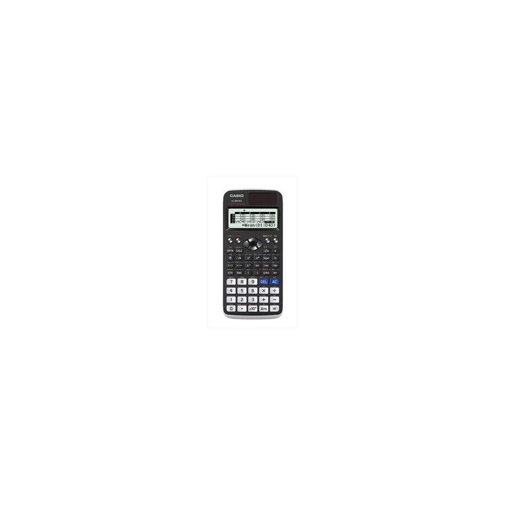 Altre funzioni: Foglio di calcolo - Funzione QR code - Soluzione di equazioni e sistemi fino a un massimo di quattro equazioni - Matrici 4X4 - Calcoli vettoriali - Calcoli degli integrali - Calcoli differenziali - Distribuzione delle probabilità - Calcoli con simboli tecnici - Funzione di annullamento - Calcolo con numeri complessi - Calcoli su base N - Calcoli di equazioni - Calcolo della disuguaglianza - Calcolo SU - 47 costanti scientifiche - 40 conversioni metriche - Parentesi automatiche - 24 livelli di parentesi - Memoria variabile (9) - Funzioni trigonometriche e trigonometriche inverse - Funzioni iperboliche e iperboliche inverse - Funzioni di potenza / Funzioni di radice di potenza - calcoli logaritmici - Calcoli esponenziali - Calcoli delle radici - Permutazione e calcolo combinatorio - Scomposizione in fattori primi - Numero intero casuale - Convertitore di coordinate polari in coordinate rettangolari e viceversa - Frazione (due modalità) - Convertitore sessagesimale-decimale e viceversa - Calcoli in gradi, gradienti e radianti - Funzione SCI/FIX/ENG - Statistiche basate su elenchi - Statistiche a 1 variabile - Deviazione standard - Statistiche a 2 variabili - Calcolo della percentuale - Immissione non naturale - Uscita con forma v - Uscita con forma ? - Tabella funzioni