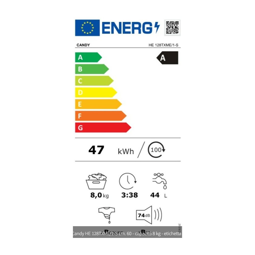 Lavatrice Candy HE 128TXME/1-S cm. 60 - capacità 8 Kg - bianco