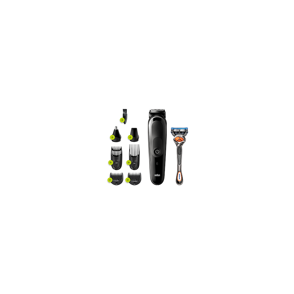Altre funzioni: Regolabarba uomo ricaricabile tutto-in-uno con prestazioni di taglio senza precedenti rispetto alle generazioni anteriori di regolabarba Braun. E con l'85% di plastica in meno rispetto alla confezione della gamma di rifinitori precedente Rifinitore 8-in-1 per barba, viso, capelli, naso e orecchie, con un rasoio Gillette Fusion5 ProGlide in omaggio per una rasatura pulita Tagliacapelli con lame affilate di lunga durata e 13 impostazioni di lunghezza per una precisione estrema nello styling Motore AutoSense che si adatta a qualsiasi tipo di barba per una piacevole esperienza di rifinitura Rasoio elettrico barba con tecnologia tedesca e batteria Li-Ion+ che offre 100 minuti di rifinitura dopo solo 1 ora di ricarica