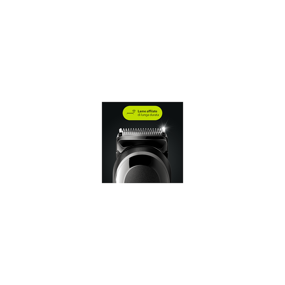 Accessori in dotazione: La confezione include: 1 rasoio elettrico barba e capelli 1 rifinitore naso e orecchie 1 rifinitore di precisione 4 pettini 1 rasoio Gillette 1 alimentatore intelligente"