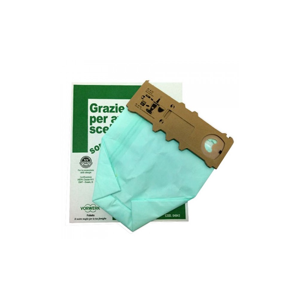 Grazie alle nuove tecnologie che la Vorwerk utilizza per i suoi accessori, i ricambi dei sacchetti per questi modelli di aspirapolvere non sono in carta, come avveniva in passato, ma in microfibra, un materiale più robusto e resistente agli strappi dovuti al sovraccarico dei residui di polvere. Il sacchetto in microfibra, inoltre, riesce a raccogliere la polvere senza rilasciarla nell’aria grazie alla trama della fibra che è molto fitta.