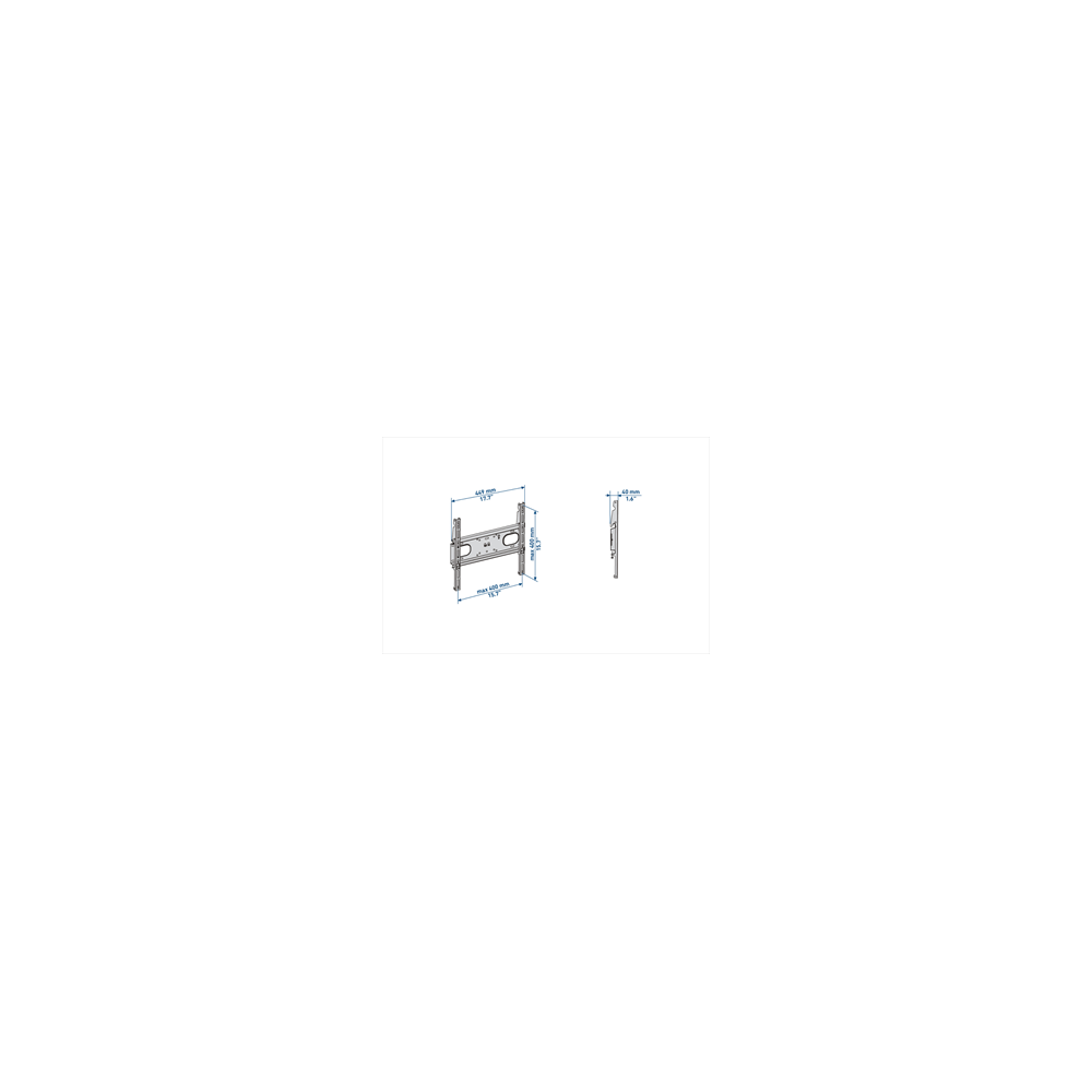 Note: Supporto adatto a tutte le TV con foratura VESA 200 - 300 -400 mm ed è abbinabile agli accessori Slimstyle come canaline coprifili e ripiani per apparecchi audio/video